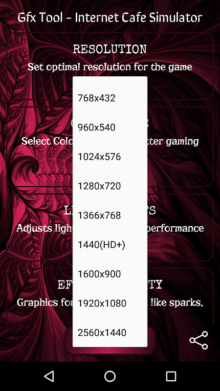 Here we referring to Video resolution of the game that means the number of pixels displayed in width x height. So, this GFX software supports from 950×540 to 2560×1440 pixels resolution, which covers even the HDR quality video games.
