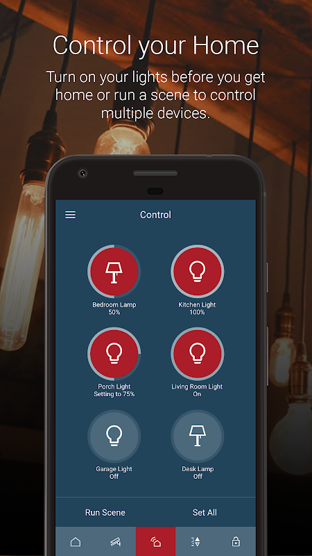 Enjoy full interactive home control including lights, locks, cameras, thermostats, garage doors, and other connected devices.