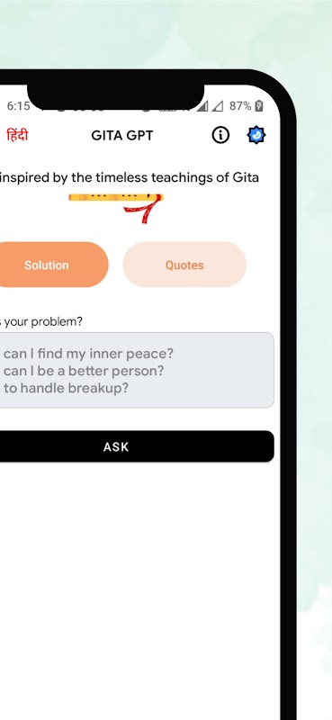 Gita GPT - クリシュナとアルジュナとつながりたい人のための究極のモバイル アプリ。また、人生にまつわる名言も読めます。さらに、クリシュナの美しいフルート音楽も気分を良くしてくれます。アプリにはダークモードも含まれています。