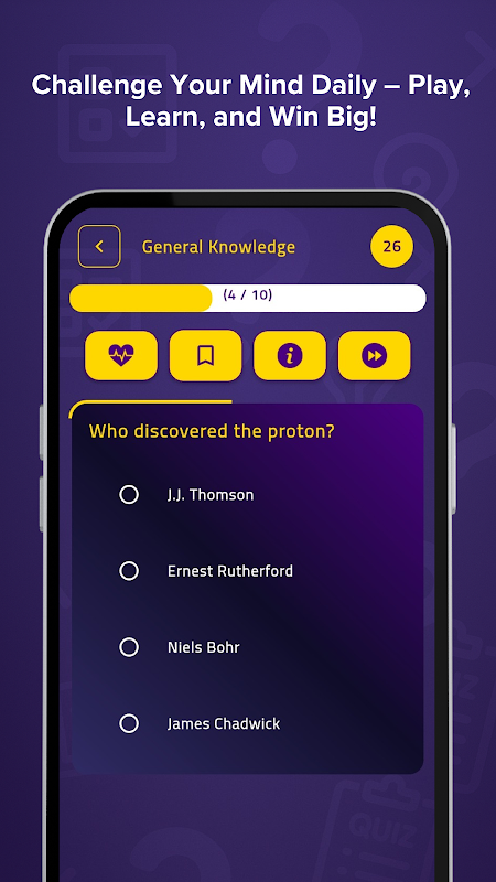- 多肢選択形式:知識を試し、好奇心を刺激するように設計された一般知識クイズに答えましょう。