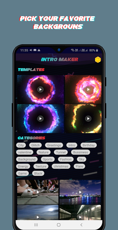 グリッチテキストを効果的にするために任意の背景を選択できます。これはPlayストアで最初のオリジナルのグリッチテキスト効果イントロビデオメーカーであると誇らしげに言います。