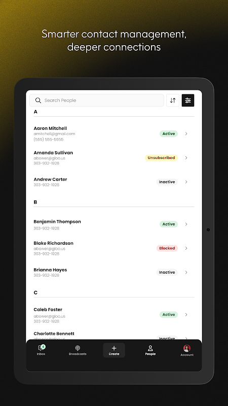 Gloo メッセージングアプリは、教会やミニストリーのリーダーが外出先でもコミュニケーションを取れるよう設計されています。有意義なリアルタイムの会話を通して人々と繋がりを保ち、祈りのリクエストに応えたり、1対多のブロードキャストを送信したり、連絡先管理を簡素化したり、会話をチームメンバーに割り当てたり、グループやワークフローにメンバーを追加したり、メッセージを見逃すことなく Explorer とやり取りしたりできるようになります。