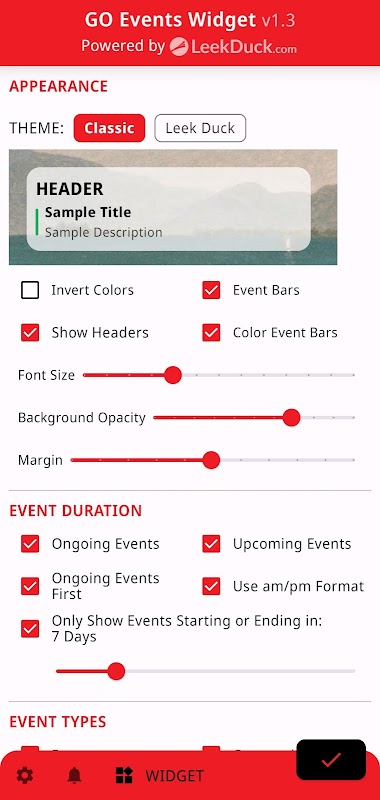 APKPure は署名検証を使用して、ウイルスフリーの GO Events Widget • Leek Duck APK ダウンロードを保証します。