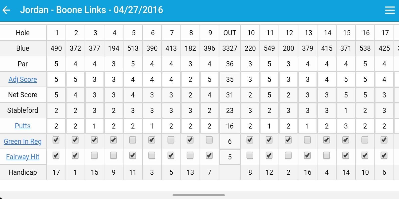 一度に1つのホールではなく、18ホールのゴルフスコアカードにスコアを直接入力する