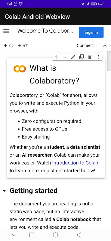 This is very simple app to run goole colab in mobile devices , without advertisement