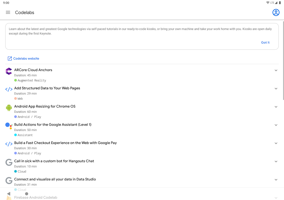 Google I/O 2019 カンファレンスの公式アプリは、現地での参加、リモートでの参加を問わず、カンファレンスをナビゲートしてくれるあなたのアシスタントです。このアプリでは次の操作を行うことができます。