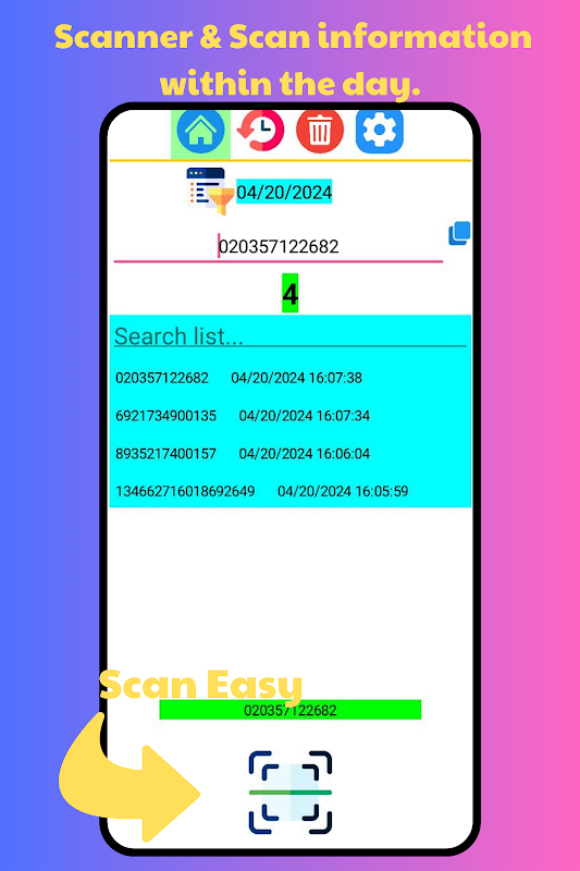 スキャンしたデータをGoogleスプレッドシートに送信します。データを日または週/月ごとにフィルタリングします。