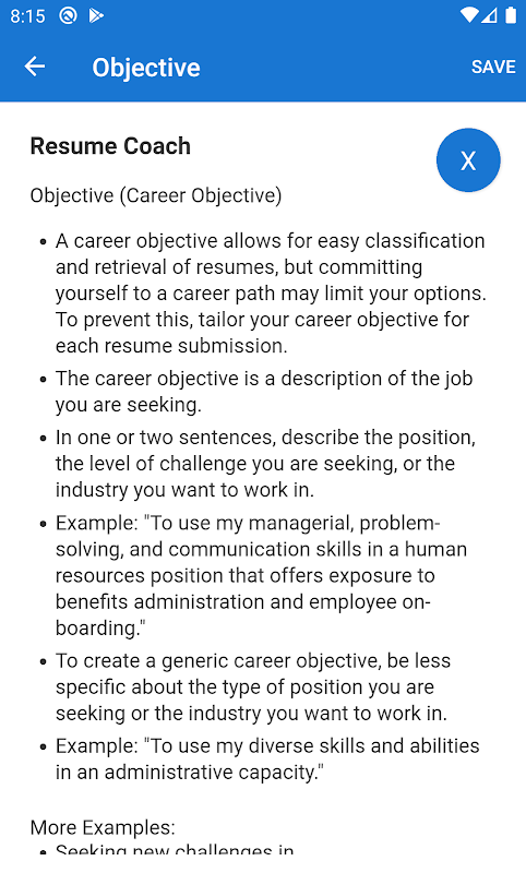 レジュームビルダーの機能は次のとおりです。