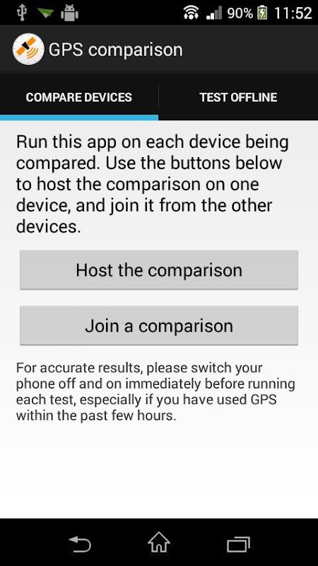 This app lets you compare two or more devices to see how good their GPS systems are. You can use it as a kind of GPS benchmark to rate one phone against another.