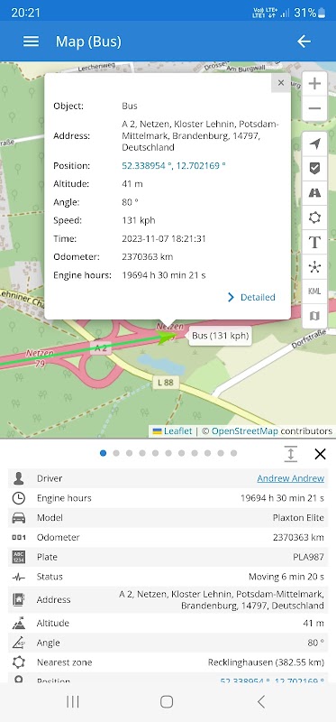 -リアルタイム追跡モードは、追跡されたオブジェクトのライブデータを表します。情報は、ページを更新したり、アカウントに再ログインしたりすることなく、10秒ごとに更新されます。監視データには、車両の状態、緯度、経度、高度、住所、速度、接続時間、点火状態、燃料消費量、センサーデータ、最寄りの地理ゾーンなどが含まれます。