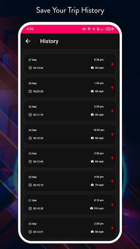 The Distance Tracking app keeps track of your travel history with detailed information, never miss any of your historical routes.