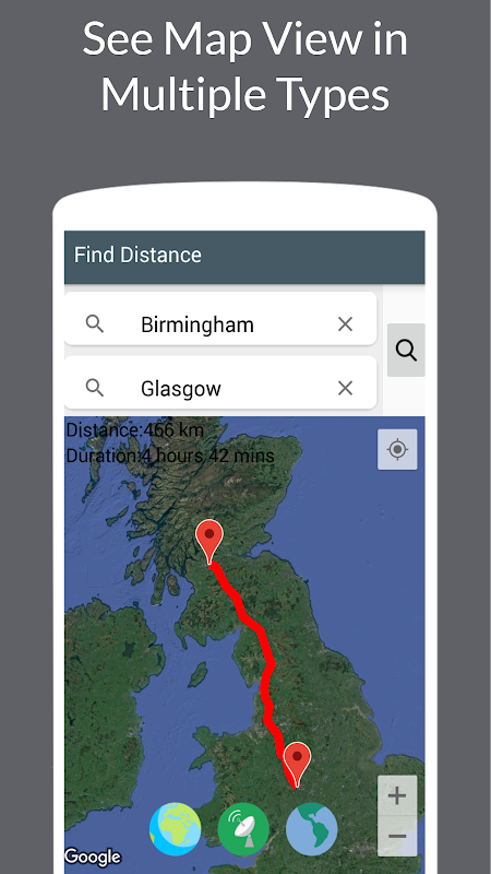-Search Places with Satelite map,Hibrid Map,and Normal map.Its provides all kinds of map type.