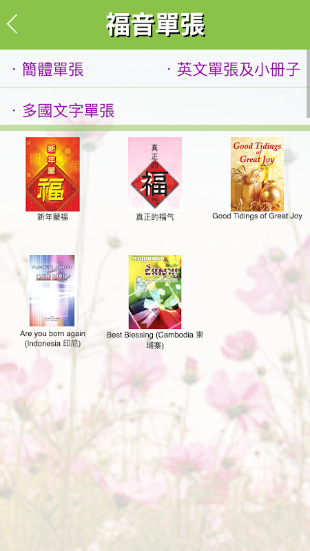 チェン・メンエン長老が書いた霊的な書籍、福音冊子、小冊子、ビデオメッセージが含まれています。