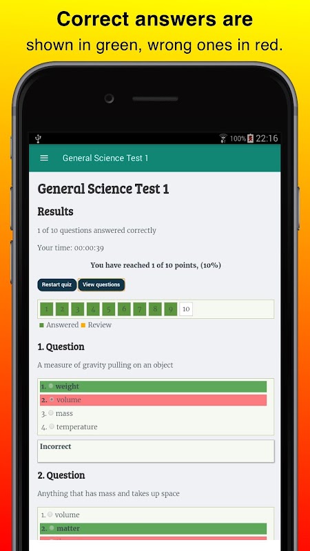 This app gives you an opportunity to test your skills in all Science subjects by performing tests.