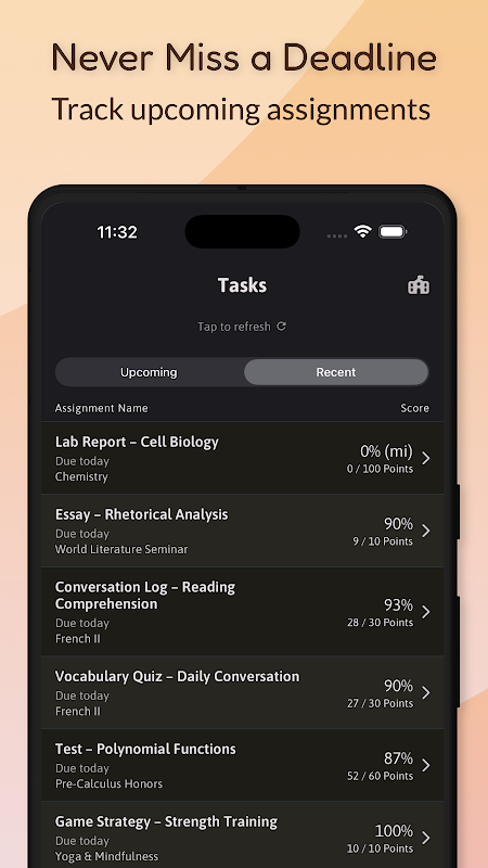 - 最近採点された課題を表示し、保護者と生徒が必要に応じて教師と連携
