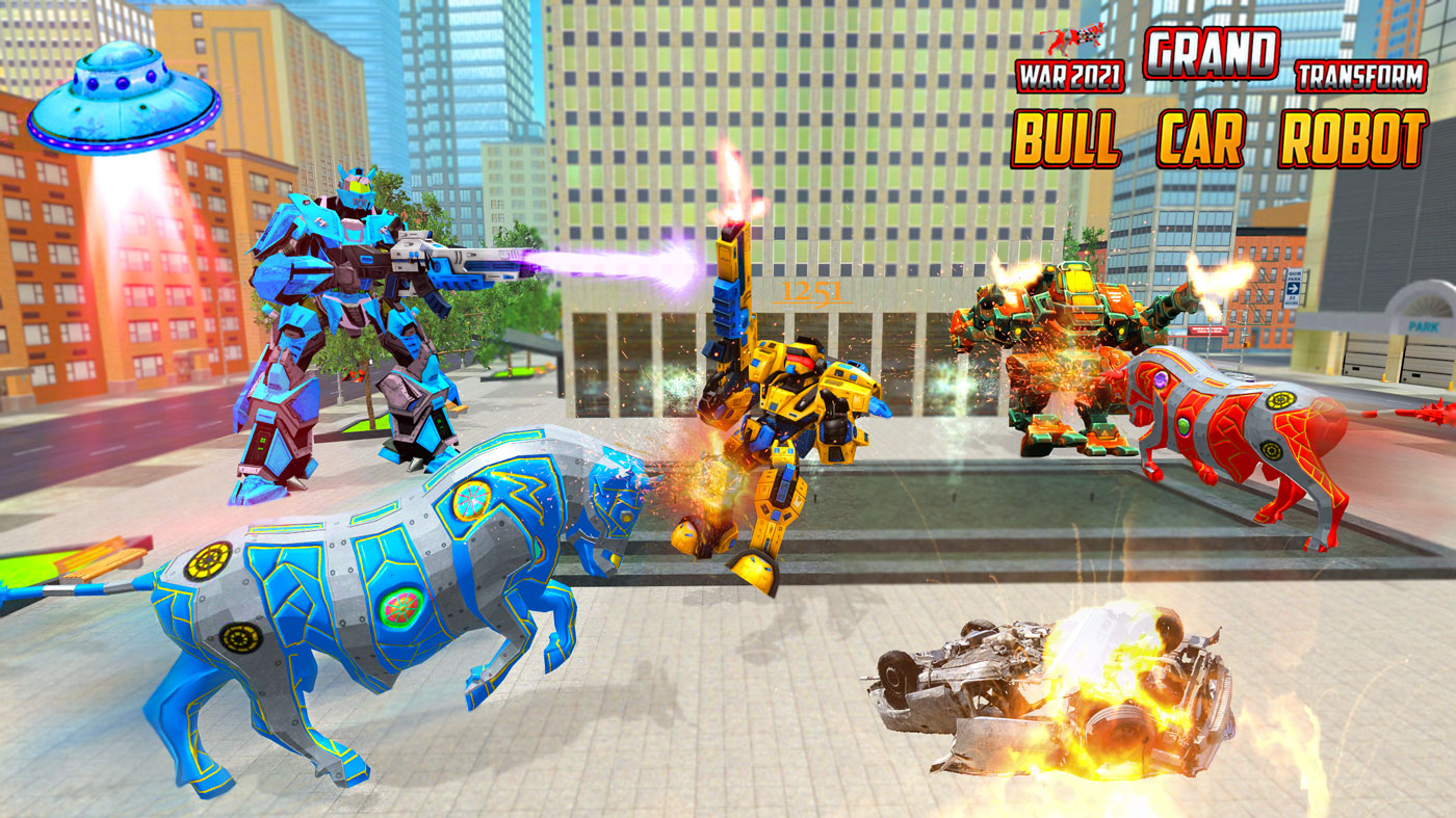 Download Now this Grand Angry Bull Robot Transform Shooting Battle Game that have awesome Graphic Quality and New grand Bull transforming game Simulator functions and you can transform into angry bull robot car transforming games of 2021.