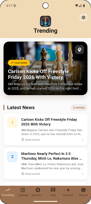 チェスのスキルを向上させるための究極のアプリ、Gandmaster Beginnings でチェスの可能性を解き放ちましょう。初心者でも上級プレイヤーでも、私たちのアプリはさまざまなチェスの序盤を学び習得するのに役立つ包括的なリソースとインタラクティブな機能を提供します。チェス愛好家のコミュニティとつながり、ディスカッションに参加し、最新のトレンドや戦略の最新情報を入手してください。シームレスな認証とリアルタイム更新のための Firebase 統合により、Chess Beginnings はスムーズで魅力的なユーザー エクスペリエンスを保証します。