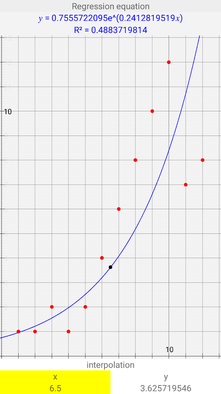 •回帰式はグラフで表示され、グラフから補間を行うことができます。