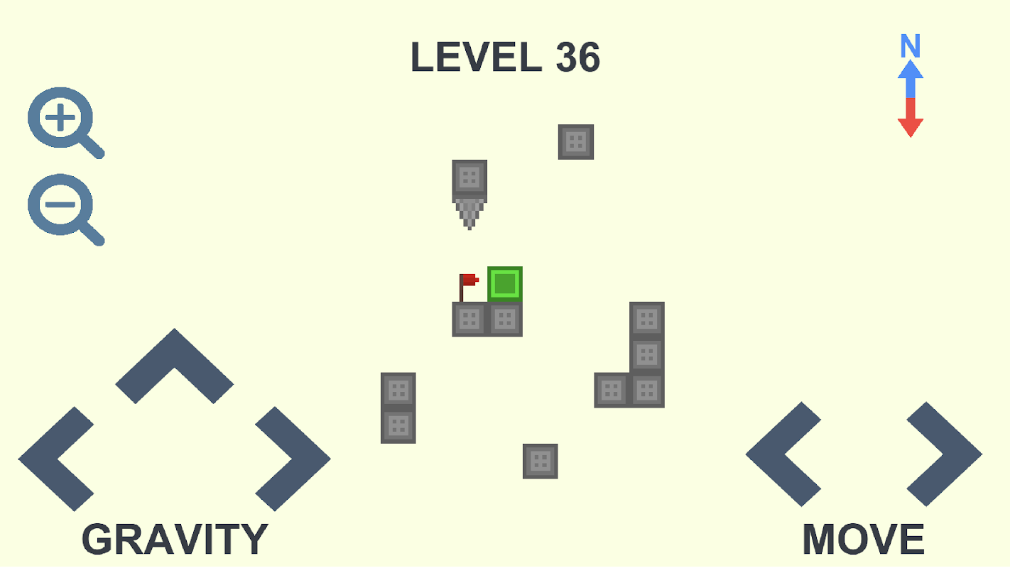 ゲームのポイントは、ボタンを使用して移動し、重力の方向を変更して、すべてのレベルを通過することです。このゲームは、論理的思考と空間的思考を発達させます。