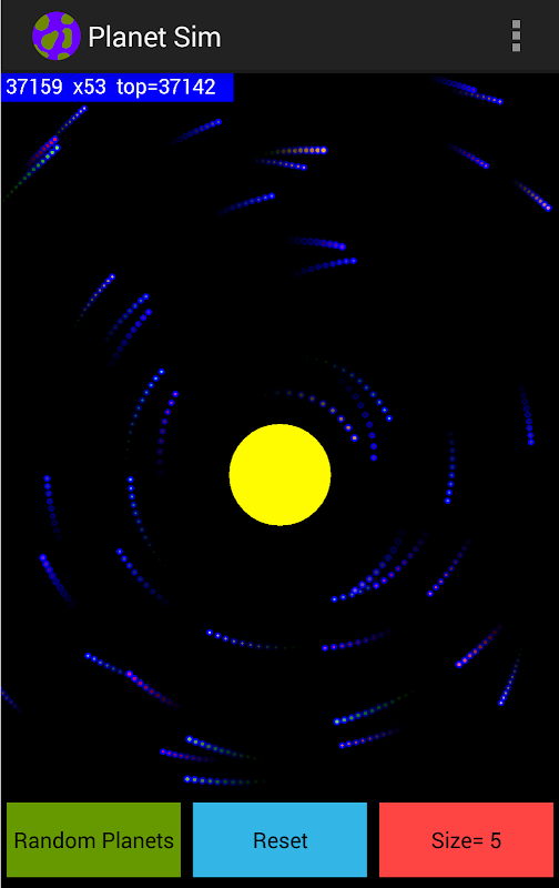 Play with planetary orbits in this fun exciting space physics sandbox. Try to make a solar system full of asteroids, moons, dwarf planets, giant planets, and suns. Touch the screen to add a planet. Drag your finger across the screen to give a planet a little bit of velocity. Enough speed will cause your planet to orbit. When planets collide, they combine together into a larger planet.