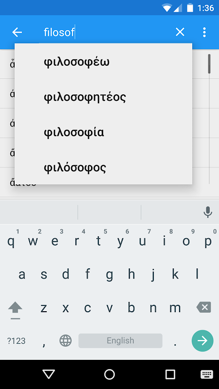 • 完全版の検索可能なギリシャ語辞典。インターネット接続は不要です。