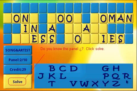 When you know the puzzle or want to solve the panel, click on the solve button and type the missing letters to complete the panel (during that time credits will not be substracted, if you're wrong you'll lose the game.