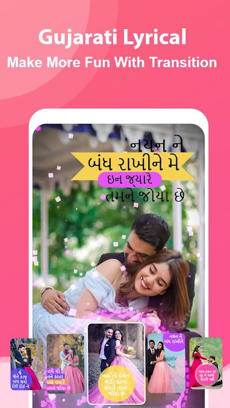 Gujarati Lyrical Video Maker には、独自の美しい写真から叙情的なビデオを作成できる新しいコンセプトがあります。