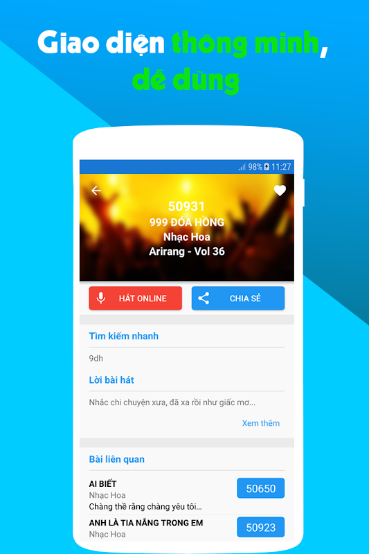 Thoả sức bạn hát hò, đâu cần 1 dàn âm thanh và bạn không cần đến các quán hát đắt tiền, bạn chỉ cần một chiếc smartphone chạy HDH Android có cài sẵn ứng dụng "Mã Số Karaoke Việt Nam" vào là đủ.