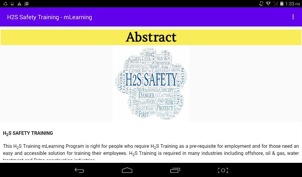 このH2Sトレーニング-mLearningアプリケーションは、雇用の前提条件としてH2Sトレーニングを必要とする人や、従業員をトレーニングするための簡単でアクセス可能なソリューションを必要とする人に適しています。 H2Sトレーニングは、オフショア、石油・ガス、水処理、石油建設業界など、多くの業界で必要です。