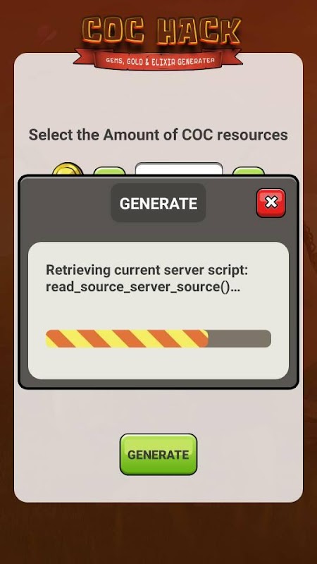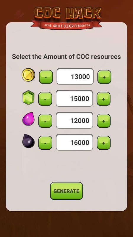 This app is not a real hack for Clash of Clans. Its only a prank and it does not give gems or resources to your coc account.
