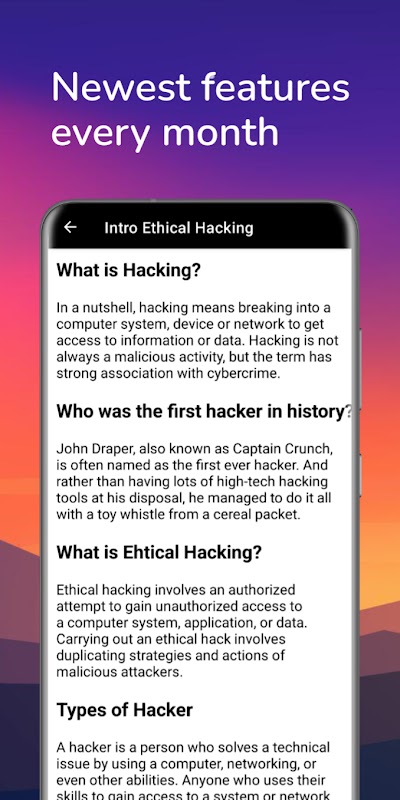 また、このアプリのHack Vack For Learn Hacking は、倫理的なハッキングとサイバーセキュリティの基本を学ぶのに役立ちます。このアプリは、段階的なチュートリアルでエシカル ハッキングを教えます。