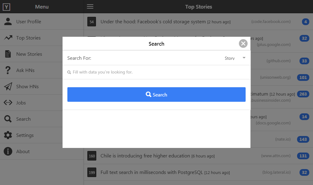 * Lists all stories on Top Stories, New Stories, Ask HNs, Show HNs and Jobs.