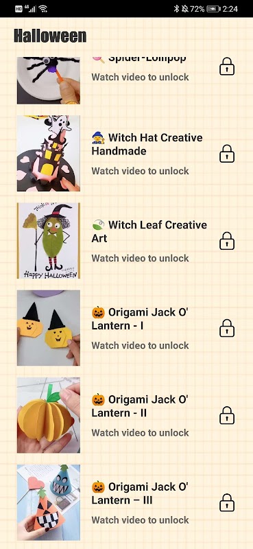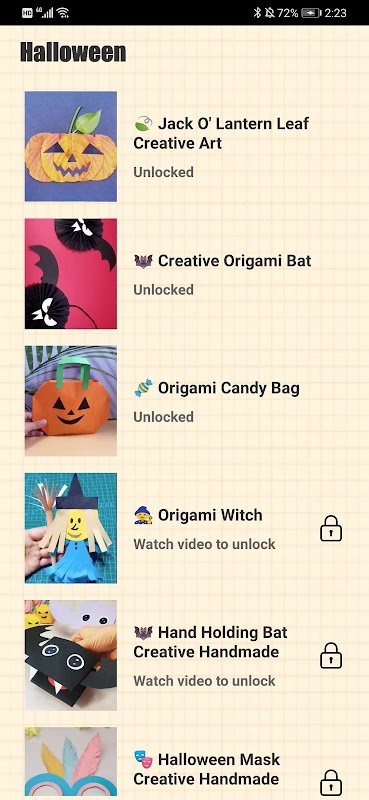 This application contains a collection of Halloween decorations schemes video tutorials. You can follow the video step by step to make the creative works. It has a friendly、simple & easy interface and it is suitable for people of all ages. You can use it offline, you can also save the video tutorial to your phone and share it with your friends.
