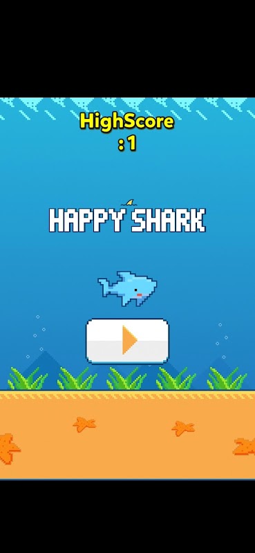 小さなサメを操作して障害物を越えるカジュアル ゲーム。