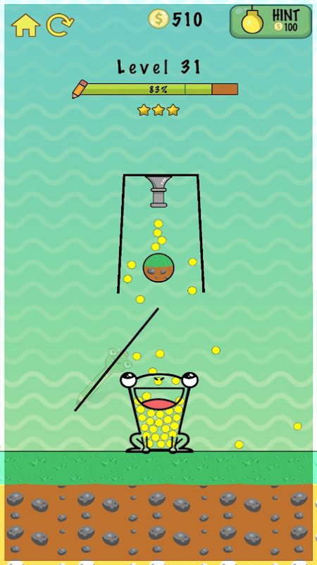 ハッピーフロッグにはたくさんの楽しいレベルがあります。枠にとらわれずに考え、全力でレベルをクリアしましょう。短い線を引くと3つ星を獲得でき、コインがもらえます。