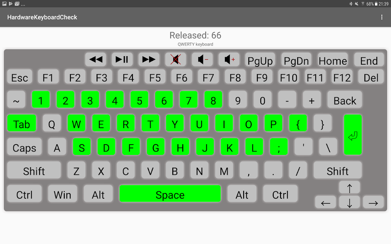 あなたの物理的なキーボードのすべてのボタンをチェックするには、このアプリをインストールする必要があります、デバイスにキーボードを接続し、それらを押してすべてのボタンをチェックし、