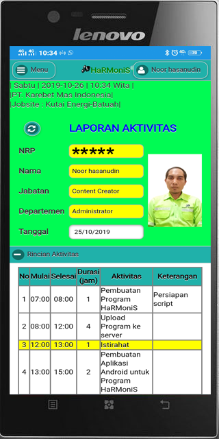 Aplikasi HaRMoniS (Human Resource Monitoring System) yaitu Aplikasi Departemen HCGS PT. Karebet Mas Indonesia (PT. KMI) untuk memonitor aktivitas semua Karyawan PT. Karebet Mas Indonesia Site Kutai Energi secara online.