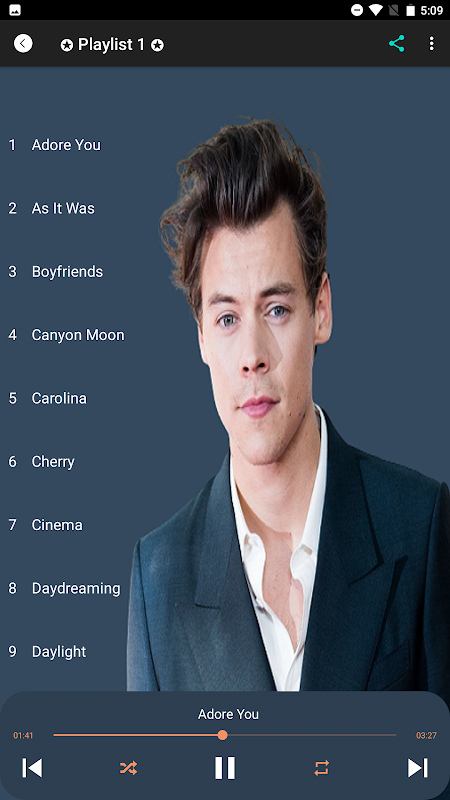 ハリースタイルズオフラインソングプレーヤーアプリ