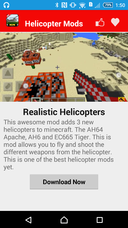 MCPE用ヘリコプターモッズ!のみBlockLauncherアプリケーションに適用されると、あなたのスマートフォンやタブレットにMCPEとBlockLauncherのフルバージョンをインストールする必要がありますすることができます。