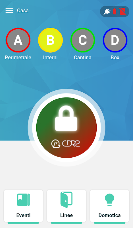 Troverai una grafica molto simile a quella che sei abituato a vedere sui nostri display ARES, rendendo l'utilizzo estremamente intuitivo. Con un dito avrai la possibilità di visualizzare lo stato corrente di tutti i sensori e dei gruppi di parzializzazione, armare e disarmare uno o più gruppi di parzializzazione, consultare il registro eventi, disabilitare un singolo sensore, controllare carichi elettrici come caldaie, impianti di irrigazione, luci e tanto altro.