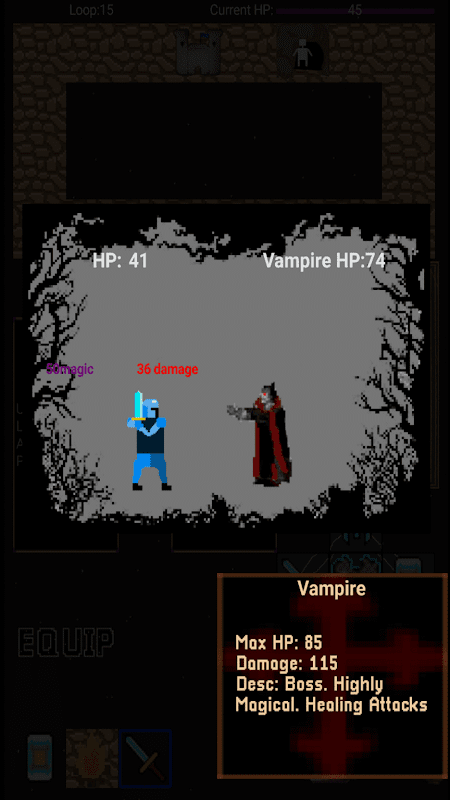 🔁ゲームは道沿いで展開され、プレイヤーは主人公の装備をアップグレードし、地形を戦略的に配置して、ますます強くなる敵から生き延びていきます。ヒーローが規定回数のループを生き延びるとボスが出現します。ボスはレアからレジェンダリー級の装備をドロップします。プレイヤーが敵との戦いで敗北すると、ランは終了し、プレイヤーは最初からやり直す必要があります。