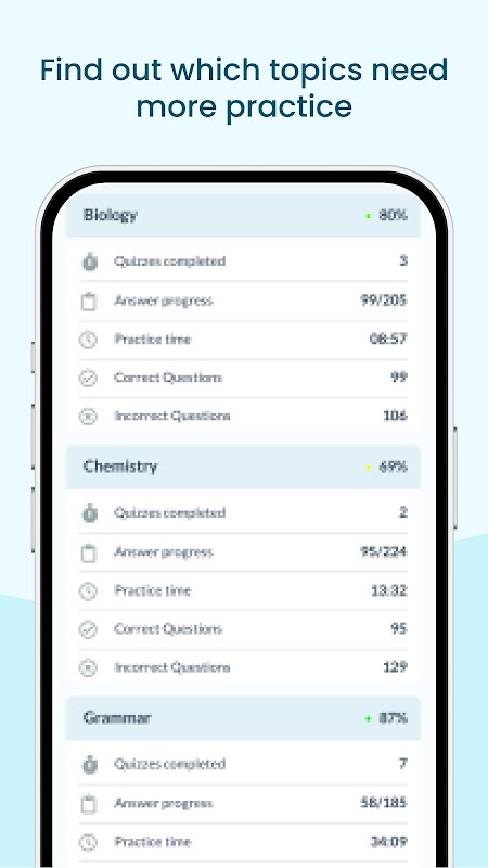 パーソナライズされた学習プランで学習時間を短縮。アプリのスマートなアルゴリズムは、あなたのパフォーマンスに合わせて学習内容を最適化し、徐々に難易度が上がるダイナミックな問題を提供します。効果的な学習で、あなたの学習スタイルに合った対策を練りましょう。