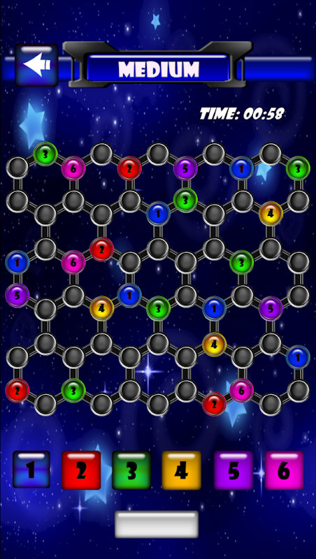 Hexacor is all about solving the hexagon color puzzle as quick as you can while making sure that each hexagon and each row consists of six different type of number and color.