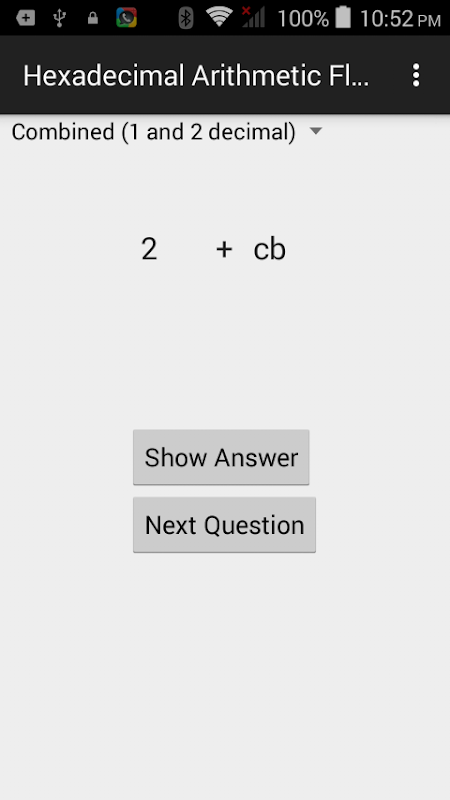 You can practice adding hexidecimal numbers. In future releases multiplication, subtraction and possibly division will be added.