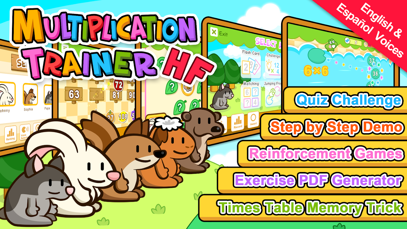 Multiplication Trainerは、スピードリスニングを通じてタイムズテーブルをマスターし、面白い強化ゲーム、ステップデモンストレーター、カスタマイズされたドリル方法で乗算スキルを練習するために特別に設計されています。