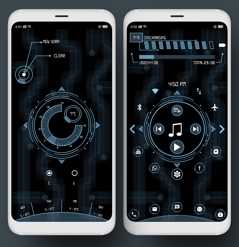 アイコンをロングクリックしてあなたのホームスクリーンアプリをパーソナライズしましょう。カラーチューザから色を選択して、あなたの気分の特定の色のハイテクUIを提供します。