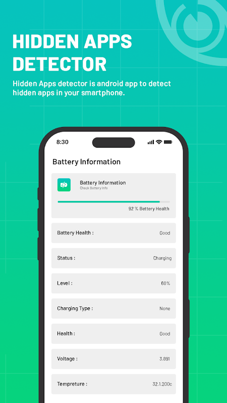 このアプリケーションは、Android 携帯電話の隠しアプリの検出や、ユーザーがインストールしたアプリケーションの情報、バッテリーの状態、充電バッテリーの状態などのバッテリー情報など、いくつかの主な機能で構成されています。