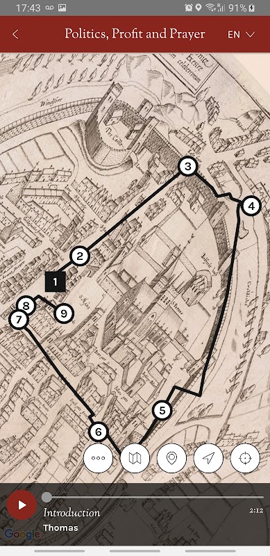 Exeter werden die Geschichten mittels GPS-Ortung aktiviert、wenn Sie sich im Stadtraumbewegen。 Zugleich ist die Tour auch virtuell erlebbar:オンライン。