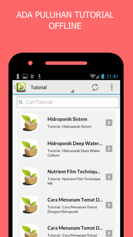 専門家に最初から水耕チュートリアルの何百ものをお楽しみください。各チュートリアルには従ってdengnaイラストはとても簡単です。また、ユーザーが求められる材料を見つける検索機能のチュートリアルがあります。すべてのアプリケーションのオフラインユーザーは、インターネットに接続する必要がなく、このチュートリアル水栽培を使用できるようにします。あなたは水耕栽培を楽しむことができるビデオチュートリアルもあります。