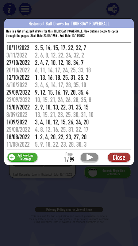 これはただ楽しむためのアプリケーションであり、ロト、宝くじ、キノ、ビンゴ ゲームの数字を保証するものではありません。